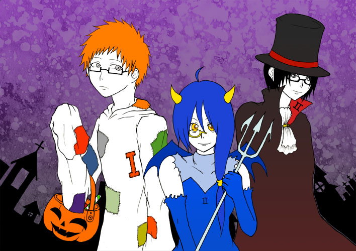当初はイモコが包帯人間、タヤが魔女っ子、モンが狼男orフランケンシュタインのイメージだったのに……いざ描いたものを見ると1ミリもかすっていないのは御愛嬌。